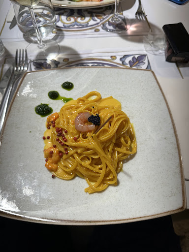Read moreLlegamos recomendados por nuestro host del apartamento que habíamos alquilado en Taormina. El local, pequeño, limpio y bien organizado, está muy iluminado, quizás algo menos de luz a la hora de cenar no le vendría mal. El servicio fue en todo momento correcto, y eficaz, pero nada fuera de lo normal y esperado, por otro lado. En cuanto a la calidad de la comida, sin entrar en los detalles de lo que es o no una fritura mixta, de 99,9% calamares con pan rallado, y 1 gamba,... los tiempos de preparación de los tres platos que degustamos fueron increíblemente largos. Desde la toma de la comanda a la llegada del primer plato pasaron más de 40 minutos, y para la llegada de los segundos (dos platos de pasta con marisco, de correcta preparación y presentación) pasaron otros 35 minutos. El resto de las mesas del local se encontraban en la misma situación. Afortunadamente mi acompañante y yo andábamos encerrados en interesantes conversaciones, pero otras mesas estaban al borde de la desesperación. Lamentablemente, tengo que avisar que esto puede ser frecuente si deciden elegir este restaurante para su cena en la zona. Ármense de paciencia, conversación o una buena lectura. O lo mismo le ponen empeño y cambian....