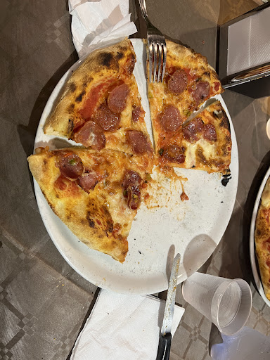 We ended up eating here after being rejected by multiple fully booked restaurants near the center of Riposto on a Saturday evening. The atmosphere on the terrace was not very good as it was located inside a small street with a lot of cars passing. The staff did not speak English, but tried their best in communicating with us. The pizza’s tasted good, as can be expected in Italy. There were however some pistachios on my pizza, which were not listed on the menu. Not a problem for me, but may be bothersome for others. A big plus are the cheap prices. We payed 17 euro’s for 2 pizza’s and 1,5...