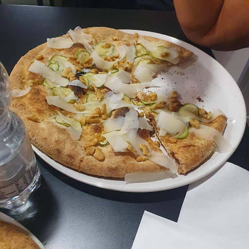 Un locale veramente come pochi. Da critico culinario (anche se amatoriale) devo dire che per una pizza al taglio supera di gran lunga alcuni fior fior di pizzerie da consumazione sul posto. In tutto. Qualità del servizio, rapidità (soprattutto), ricezione degli ordini e gestione della cucina (visibile dalla piccola saletta d'attesa), originalità delle pizze, ingredienti a chilometri zero, pizze per celiaci, pizze con impasto integrale, cordialità con i clienti che vengono intrattenuti nonostante il personale non si fermi mai e faccia tre cose contemporaneamente ... E poi come se non bastasse pizze originali, con il pesto, il miele, i fichi e qualsiasi diavoleria. Ingredienti abbondanti e non striminziti, qualità dell'impasto perfetta. Che dire, credo di aver elencato tutto, non credo di dover segnalare lati negativi, forse chiude un po' presto alle 21:30 per il fatto di essere una...