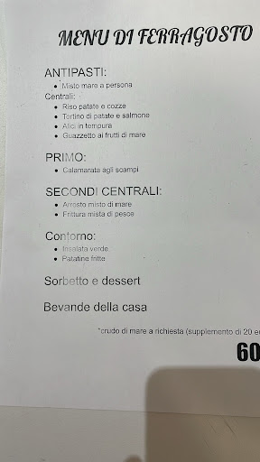 Un breve commento sui piatti: Misto mare: servito a persona, quantità adeguata, qualità non eccelsa, ma accettabile Riso patate e cozze: servito centrale, 4 porzioni per 13 persone, galleggiante nell’olio, cozze praticamente assenti Tortino di patate e salmone: servito centrale, 3 porzioni per 13 persone, forma totalmente indefinita per essere un tortino, spappolato e inconsistente Alici in tempura: servito centrale, 4 porzioni per 13 persone, servite fredde, probabilmente anche buone se fossero state calde, ma inevitabilmente gommose Calamarata agli scampi: ben condita, ben insaporita, buona. Arrosto misto di pesce: servito centrale, 3 porzioni (da 3 persone massimo) per 13 persone. Escludendo i gamberoni, tutto il resto era in quantità insufficiente rispetto ai commensali. In ogni caso di buona qualità e ben condito Frittura mista di pesce: stesso discorso dell’ arrosto, buona ma assolutamente insufficiente in termini di quantità Dessert: vergognoso, presentati dei babà tagliati a pezzi, e dei cannoli spezzettati, probabilmente erano insufficienti dopo aver servito gli altri tavoli. Qualità incredibilmente bassa Bevande: in un menu fisso con un prezzo anche abbastanza alto, ci si aspetta di avere almeno bevande senza doverle “tirare” a forza dalla gestione. Difficile ottenere anche bottiglie d’acqua, per di più quasi a temperatura ambiente.
