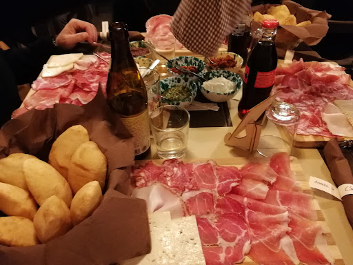 Dopo una serata al bowling abbiamo pensato di provare questo posto per noi nuovo. Locale caratteristico, bello a mio parere, un posto diverso dal solito; ovviamente non classificabile come ristorante ma come un’alternativa ad esso. Abbiamo ordinato quattro taglieri (eravamo quattro persone) e la ragazza che ci ha serviti al tavolo ci ha detto che avrebbe portato le salse in un’unica portata per evitare di portarle per ognuno ma che sarebbero state più abbondanti in quanto ogni menù aveva le sue salsine. Bene, le salse sono arrivate nelle mini porzioni così come erano agli altri tavoli ma comunque sarebbero bastate; ho chiesto un po’ di squaqquerone in più (arrivato sempre nella mini porzione - ripeto, avremmo dovuto avere quattro mini porzioni) precisando che ne avremmo dovuto avere quattro di porzioni…me lo son ritrovato nel pagamento sullo scontrino, come salsa aggiuntiva…assurdo! Ci siamo poi fermati a fare quattro chiacchiere con il proprietario, ci siamo fermati per un bel pó, data la serata in settimana e quindi con poca gente; ovunque in qualsiasi posto, il ristoratore, dopo aver pagato un “bel” conto favorisce un caffè o un amaro…nulla!! Che dire, posto nella norma, salumi di qualità ma il cliente viene visto solo come conduttore di moneta e stop!! Sicuramente non ci ritorneremo!
