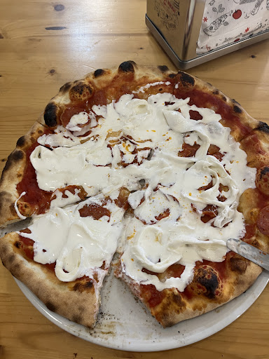 Davvero un ottima pizzeria da asporto con piccolo angolo per la consumazione sul posto. D'estate potete anche degustare ai tavoli fuori in strada, ma non e' proprio il top visto che le auto vi passano proprio a pochi centimetri. Detto questo le pizze e i panzerotti sono ottimi anche se il forno e' elettrico: merito della scelta dei prodotti genuini di prima scelta e del sapiente lavoro di Stefano e Company. Provate e sentire il sapore delicato dell'impasto sottile e leggermente fragrante, che fa da piatto ad rosso pomodoro fresco e leggermente dolce di sale, che sposa una fresca e leggera mozzarella dolce che fuoriesce dal mare rosso del pomodoro come isola nel mare. La cordialità, la rapidità e la simpatia rendono servizio e il posto un pezzo di storia fuori dal mondo dove il tempo non passa...