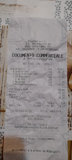Read moreSe potessi darei di meno...incompetenza e poca comunicazione tra chi ci lavora fanno da padrone in questo punto McDonald. Leggendo altre recensioni ho potuto notare che quello che è capitato a me ultimamente succede spesso anche ad altre persone. Abbiamo pagato circa 10 euro 8n più rispetto al coupon in offerta attivato sull'app e per poi scoprire, una volta arrivati a casa, che mancavano nel sacchetto alcune cose dell'ordinazione che comunque avevamo pagato. Sicuramente non ci tornerò mai più ed è un peccato perchè è l'unico in zona! P.s.: se leggeste le varie recensioni vi accorgereste che il problema che ho avuto io lo riscontrano in molti. Dovreste fare qualcosa per risolvere queste problematiche. Ho visitato moltissimi punti McDonald's e vi posso assicurare che l'unico in cui si riscontrano questi problemi è solo il vostro... assolutamente non in linea con la cortesia e professionalità di tutti gli altri punti vendita sia della Calabria che nazionali. Ho segnalato la cosa anche alla sede centrale, oltre che a voi, ma con vari giri di parole all'italiana non siete venuti incontro al cliente in alcun modo! Ed è inutile che scrivete in tutte le vostre risposte che vi dispiace e sperate che ritorniamo da voi...basta leggere le varie recensioni per capire che così allontanate la...