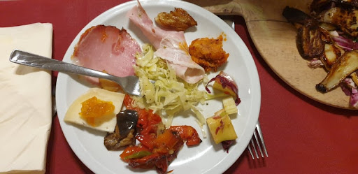 Read moreRead moreFaccio una premessa riguardo la mia recensione: noi prediligiamo più la qualità alla quantità. Locale carino e personale accogliente però non ci siamo trovati bene. Ti convincono ad ordinare l'antipasto che è veramente immenso ma, alla fine, delle cose che hanno portato, ne ho mangiate si e no 3/ 4. La mozzarella non mi ha entusiasmato e anche altre cose che non sono sapori particolari ma cose che si possono fare a casa tranquillamente-- bietole e patate, tortino di patate, ecc. Invece i Fughi porcini erano molto buoni. Poi abbiamo ordinato 3 tipi di pasta che dovevano essere(avevamo specificato)"assaggini centrali", perché li volevamo mettere al centro della tavola così da poter ordinare anche il secondo, ma ci hanno dato tutto tranne che assaggino! Tegole di pasta giganti che era anche difficile passarle tra di loro e dopo quelle era impossibile poter ordinare altro! Inoltre, la pasta con la panna perché? Onestamente, se io ordino pasta e funghi vorrei sentire i funghi e non la panna, idem quella con lo zafferano! E per finire la cheescake che invece di ricotta c'era panna e pan di Spagna! Ma allora non chiamatela...
