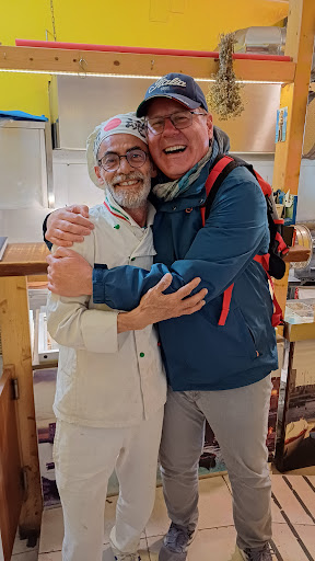 Read moreFantastisches Essen für Liebhaber von Meeresfrüchten! Der Service und der Küchenmeister (s. Bild) auf dem kleinen Platz in der renovierten historischen Altstadt von Giovinazzo sind freundlich, flink und motiviert. Wir folgten der Empfehlung des Chefs und bestellten den Mixed Seafood Grill für zwei Personen. Den enthaltenen Thunfisch in die von uns geliebten Cozze umzuändern war kein Problem - DANKE für die Flexibilität! Nachdem wir die leckeren Bruschette verputzt hatten, ging es los: zunächst ein Berg Cozze, der Empfehlung des Chefs folgend im Sud aus Pepe & Vino Bianco - ein Traum...! Noch nie habe ich bessere Muscheln gegessen. Das Brot dazu war ebenfalls unendlich lecker. Dann kam eine Platte mit einem ganzen gegrillten Polpo, 4 Schwertfischsteaks und 7 Riesengarnelen - alles auf den Punkt gegrillt mit herrlichem Grill-Aroma. Wir hatte zu kämpfen!!! Aber aufgrund der Geschmacksexplosionen waren alle Teller am Ende blitzblank. Zum Abschlusse noch ein Sorbet mit Limoncello, und wir rollte glücklich in unsere Unterkunft. Was soll ich sagen: wir sind 9 Tage in Apulien und haben unsere Reise extra so umgeplant, dass wir nach 7 Tagen noch einmal dort essen können. 100%...