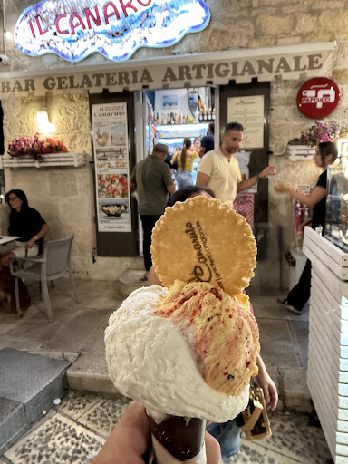 Read moreQuesto, è un posto veramente particolare ; un angolo di paese a vista mare, molto caratteristico, e molto suggestivo! È adombrato dal Torrione di un'antica fortezza, adibito oggi, ad abitazioni! Sull'ampia terrazza in alto rispetto al livello del mare, si possono trascorrere momenti davvero piacevoli, seduti ai tavolini, e cullati dalla fresca brezza marina, con davanti il Porto di Giovinazzo al completo! Durante la sosta, si può pregustare un eccellente gelato artigianale, servito o in coppa di vetro, o in una bella cialda, dai gusti classici, o di frutti ; oppure granite varie, magari con panna, frullati, frappè, estratti vari, succhi di frutta, e molto altro ancora! Ma, non sono da meno, nemmeno : caffè, cappuccini, espressini, cornetti, pasticcini, pasticciotti, merendine, gelati confezionati! Ed anche durante la mattinata, si può consumare un ricco spuntino, con focaccine, panzerottini, olive, patatine, affettati misti, riso nero freddo con gamberetti, latticini, salumi, e bevande di tutti i tipi! C'è il servizio ai tavoli ; l'ingresso per le persone disabili, e per i nostri cari amici animali! I prezzi, sono sostenuti, e l'accoglienza, è delle migliori in assoluto : è un punto di Ristoro molto bello, che va, non solo visitato, ma vissuto appieno, nel vero senso...