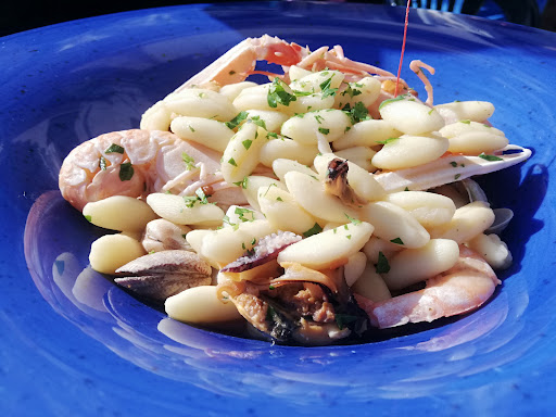 Abbiamo proseguito con delle buone verdure cotte (nonostante Filippo per ben due volte abbia provato a propinarci un'ombrina, che probabilmente avrei dovuto pagare lasciando le chiavi dell'automobile), dei buoni paccheri allo scorfano, e un riso patate e cozze, troppo burroso per poter essere finito.
