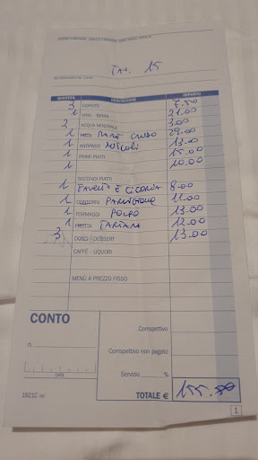 Prima del conto ci ha chiesto una recensione in una loro scheda. Ho messo un 7, che esprimeva una cortese generica insoddisfazione.