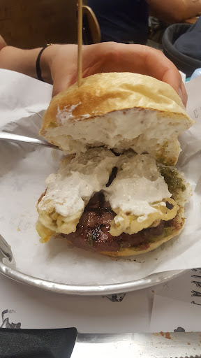 Sono stato due volte in questo locale (seduto) da cliente e sempre in piacevole compagnia, ho scritto (seduto) ebbene si miei cari lettori, perché questo locale oltre ad offrirvi degli ottimi panini e carne al piatto seduti vi potrà deliziare anche di un grandissimo girarrosto, al di fuori del locale dove sfornano in continuazione polli allo spiedo,tracchie di maiale o stinco di tale suino una squisita leccornia, ma il locale se pure non tanto ben visibile o ben messo in risalto dalla strada, quando si entra si nota subito la particolarità del locale che si fonde in un misto di green modern di tendenza ben sistemato con tavolino e sedie o panche adatto a tutti giovani e meno giovani, bambini e affini, molto ben tenuto, tra l'altro pulito in tutti gli angoli, e la cosa che più vi stupirà è che usciti di lì non si avverte la puzza di frittura o di chiuso addosso, ci sono una vasta scelta di panini, in tutte le salse ma quello che più vi consiglio è il mio preferito con hamburger provolone crema di frjiarielli e tarallo sbriciolato per finire, sopra una bomba..... beh le polpettine non sono male in particolare quelle con il lardo di colonnato, poi per finire il dolce signori clienti come non potervi immergere nel loro cavallo di battaglia e cioè la loro cheesckake al pistacchio una manna dal cielo per la glicemia e per i diabetici scherzo naturalmente, ma è ottima. Provare per credere, poi per terminare che cosa posso evidenziare di più bhe che dirvi il servizio 10 naturalmente le cameriere sempre sorridenti vi sapranno accompagnare lungo questo girone golosone paradisiaco,in particolare ricordo il nome della mia si chiamava Melania bravissimi bellissima e cortesissima. Anche Paola non male sempre attenta ad i dettagli. E per concludere che dirvi di più.? Andateci e provate stesso voi se vi ho mentito o no su quello che...