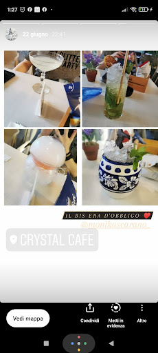 Read moreHo festeggiato un’occasione speciale al crystal con un aperitivo. All’inizio sembrava che tutto andasse bene, fin quando il giorno della festa arrivo al bar e porto la torta, come da accordo, e una bottiglia Santero 958 gialla. Mi è stato detto solo in quel momento che non fosse possibile portare la bottiglia da fuori, e che avrei dovuto acquistarla da loro. Accetto la loro politica, ovviamente. Mi si storce molto il naso nel momento in cui mi fanno pagare la bellezza di 30 euro la stessa bottiglia Santero 958 che avrei voluto portare io da fuori, l’unica differenza era il colore rosa. Sappiamo bene che una bottiglia del genere costa meno di 5 euro, e mi sembra alquanto esagerato e squallido farmi pagare una bottiglia Santero 30 euro. Con gli stessi soldi avrebbero dovuto darmi una bottiglia qualitativamente migliore. Oltretutto, il personale mi è sembrato alquanto scortese nel cercare di farmi pagare anche più del dovuto, sbagliando a fare i conti sulla calcolatrice più volte e chiedendomi altri soldi che non gli erano dovuti.