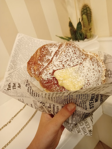 Ho scoperto solo qualche giorno fa questo posto, poiché da queste parti non venivo quasi mai. Ho amato follemente questo cornetto, è la fine del mondo! Vi assicuro che appena entrate nel locale (piccino e grazioso) e osservate le vetrinette avrete voglia di assaggiare ogni singolo dolce, perché sono davvero invitanti e la buona qualità salta a colpo d'occhio! Mi sono così innamorata di questo cornetto che stasera l'ho ricomprato e insieme ci ho aggiunto un altro cornetto gusto Nutella (aggiungo che i cornetti sono grandi e non mignon come si trovano di solito), un Donuts gusto Oreo (mai assaggiato un Donuts in vita mia e mi è piaciuto molto) e una graffia, che era enorme e squisita. Ah! Poiché non si fanno mancare nulla la graffia te la friggono davanti a te. Impasto di tutti i dolci morbidissimo (specialmente la graffia che è una nuvola!) e tutto ben cotto. Non trovi pezzi crudi e gommosi come purtroppo capita ultimamente di trovare nelle pasticcerie. Sono tanto soddisfatta e penso che spesso mi delizierò con i dolci di questo negozio.❤️😍