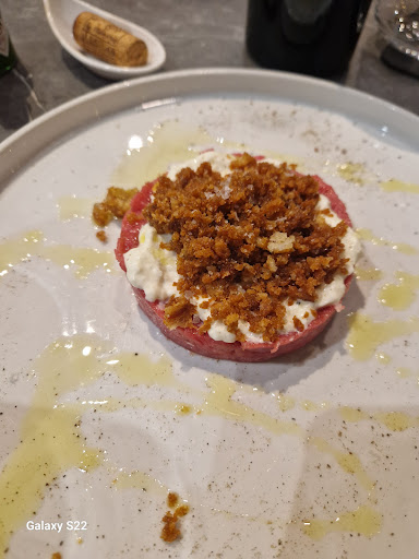 Read moreSabato scorso sono finalmente riuscito a sedermi da I BACCO, da quando mi sono trasferito al centro di Napoli difficilmente torno a Giugliano, ma adesso ho un motivo più che valido. Locale accogliente, caloroso, personale cordiale, simpatico, attento e mai invadente. Sanno il fatto loro in merito alle carni, sanno spiegarti i tagli, gradi di marezzatura e livello di frollatura, in quanto ai vini ...NO COMMENT... Il proprietario è un vero esperto(nonché figlio d'arte...perché si, il vino è arte). Abbiamo preso un Cirò anno 2020, che ci ha sapientemente versato in un bellissimo decanter, dove dopo pochi minuti ha acquisito un sapore ed un corpo unico. Come antipasto abbiamo preso delle squisite sfere di formaggio con bacon e vellutata di piselli, come contorno delle verdure grigliate ed una scarola croccante con uvetta e pinoli...il tutto cotto sapientemente, si sentiva il sapore genuino di ogni verdure senza che venisse sovrastato dal condimento. Conto di tornarci presto per assaggiare qualche buon piatto di pasta ed una selezione di carne. Prezzi nella media considerando la qualità ed il servizio...a meno vi mangiate la gomma. Un esperienza che vale la pena vivere almeno una...