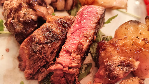 Braceria con un offerta di carne abbastanza varia. Nel frigo stagionatore sono messe a frollare carni bovine di pregio che evidenziano una buona competenza del settore da parte dei gestori. Così come l'offerta del pollo preparato al girarrosto in diverse varianti. Ottime le patate tagliate a fette grandi e fritte, veramente buona la salsiccia. Nel complesso un giudizio di appena sufficienza, per diversi motivi: la tagliata andava consigliata non di scottona con l'osso (secondo la mia modesta esperienza fatta tra tanti ristoranti bracerie e parlano per me le mie recensioni); e per me la tagliata deve essere di controfiletto o entrecote, la scottona con osso lasciamola a chi la chiede appositamente magari come una buona carne alla griglia. E se la servi con pomodorini e rucola, che la rucola ci sia (vedi foto). 30 euro per questo piatto di carne sono decisamente troppi considerando lo scarto dell'osso. Però visti i prezzi della carne nel frigo... Siamo a circa il 30% in più sul prezzo di mercato. Le alette di pollo buone ma al limite del crudo, dovevano essere più cotte, meglio un pollo un po' più cotto che lo insaporisci con le salse che un pollo crudo che può anche fare male. Ottimo il servizio, con personale attento e che si da molto da fare. Parcheggio esterno...