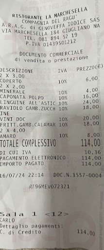 Read moreLa cucina La Marchesella mette al centro la qualità indiscussa degli ingredienti, che si rispettano ed esaltano in tutte preparazioni. Un gioco di equilibrio tra esperienza, creatività e conoscenza dei fondamenti dell’alta ristorazione. Ogni piatto ha un risvolto coinvolgente. Le proposte di menù seguono la stagionalità dei prodotti, innovazione e tradizione che intrecciano nella composizione dei piatti della cucina italiana rivisitata in chiave contemporanea. Dentro ci sono l’attenzione e il rispetto per le materie prime, gli accostamenti, anche inusuali, di sapori e consistenze. La titolare, accogliente ed empatica, continua nella ricerca costante della qualità del prodotto e servizio.Tutto questo è possibile anche grazie ad un team di ottimi collaboratori, i quali offrono la professionalità e garbato con l'obiettivo di far sentire a suo agio il cliente e fargli passare una serata piacevole, garantendo un ambiente curato e molto intimo.