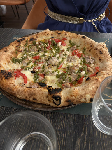 Io e la mia fidanzata siamo venuti per la prima volta venerdì scorso... 21 giugno. Fortunati perché avevamo improvvisato senza prenotazione. Impatto subito molto positivo all'ingresso con la persona alla cassa che ci ha fatto accomodare al piano di sopra. Ci sono diverse sale tutte molto piacevoli e confortevoli. Capitati al primo piano, saletta esterna, forse quella più piccola delle altre, ma molto carina, apprezziamo tantissimo la gentilezza e la professionalità del cameriere. Una persona gentile e a modo che mostra passione nel suo lavoro. Gli chiediamo dei fiori di zucca buonissimi con un tocco di originalità perché diversi da altri che abbiamo provato altrove e una mozzarella in carrozza altrettanto unica e molto molto buona. Prendiamo una pizza con la parmigiana di melanzane e ad ogni morso sembrava stessimo mordendo una nuvola piena di buon gusto che ci ha fatto subito innamorare. Impasto e ingredienti top. L'altra una "nuova consistenza". Una pizza Margherita, nel nostro caso, con dei processi di cottura che restituiscono un grande risultato finale che ci è piaciuto molto. Perfino il dolce, di loro produzione, è stato perfetto. Le 5 stelle sono meritatissime. Abbiamo messo questa pizza nella nostra top 3 delle pizze che amiamo di più. A mani basse credo che potrebbe essere quella che preferiamo di più al momento.