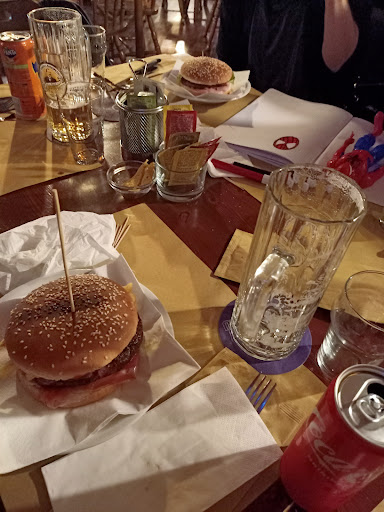 Durante il mio soggiorno a Giulianova decido di provare questo pub, che oltre alla sala interna offre anche uno spazio all'aperto con diversi tavoli e zona panche, in stile Texas saloon. Primo punto a sfavore una lunga attesa di quasi un'ora per essere serviti quando nel locale erano presenti solo pochi altri clienti. La bistecca era buona ma già praticamente fredda come pure gli arrosticini. Stiamo parlando del caldo mese di agosto, come fai a servire piatti di carne freddi? Punto di forza del locale le birre alla spina molto molto buone, l'Alambra Roja fenomenale. Le ragazze del personale tutte molto carine e cordiali. Invece il gestore dovrebbe rivedere il menù eccessivamente lungo e i tempi di preparazione dei cibi abissali. A Giulianova esistono decine e decine di locali quasi tutti estremamente buoni come livello dei cibi e dei prezzi, a chi volesse provare questo pub consiglio di andare sulle birre e al massimo qualche stuzzichino. Allegati foto dei piatti...