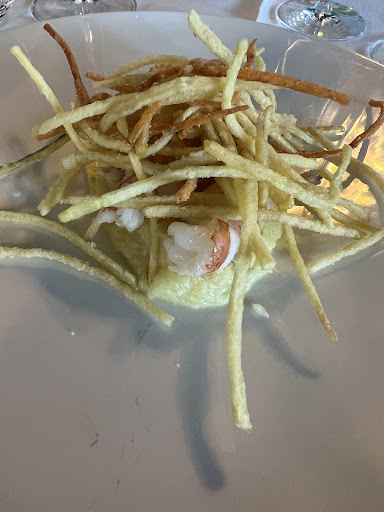 Read moreCi tengo a precisare inizialmente l'estrema cordialità, preparazione e gentilezza oltre che professionalità di tutto lo staff. Tutto quello che abbiamo mangiato era "spazialmente" gustoso, con ingredienti di altissima qualità e cotti alla perfezione. Oltre al pesce, poiché avevamo anche un commensale che non ne mangia, hanno preparato un tagliere di alta qualità di salumi e formaggi e poi una pasta alla chitarra con macinato eccellente. Insomma nulla di improvvisato. Tornando al pesce: il nido di gamberi, purè e verdure fritte davvero croccanti, tutto equilibrato. Per quanto riguarda il polpo con pomodori e avocado, dico solo che abbiamo preso una seconda portata perché il sapore era unico, davvero avvolgente, acre ma delizioso. Sia la pasta alla chitarra alla marinara che con Paragosta davvero eccellenti, cottura perfetta e condimento cremoso e gustoso. Frittura perfetta, croccante, non unta, leggera, anche qui fatto il bis! Per quanto riguarda i dolci sono delle opere d'arte con in primis la zuppa di frutta con cioccolato bianco e frolla, ma anche il babba fatto in casa e la sfoglia con crema davvero impeccabili. Peccato la posizione, perché meriterebbe una location esterna più avvolgente come gli interni. Con un posto del genere sarebbe romanticissimo portarci qualcuno. Vi auguro il meglio!