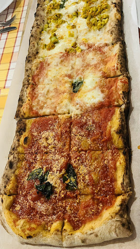 L'esperienza ha iniziato con un'accoglienza calorosa da parte dello staff, cortese ed estremamente efficiente. Gli antipasti a base di fritture erano squisiti, ma l'assoluta regina della serata è stata la pizza al metro. Con una gamma di sapori tra cui scegliere, la pizza cilentana e quella con stracciata di mozzarella, fiori di zucca e alici si sono distinte per il loro gusto irresistibile.