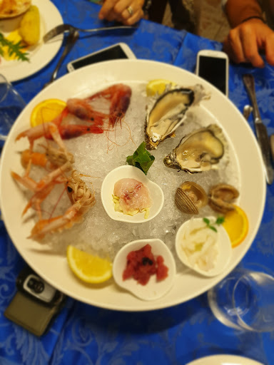 Great service and very nice location! The dishes are all gorgeous. Very good antipasti (starters) combo cold and warm. We also tasted a mix of raw fishes, all very very nice even though I am not a super fan of raw fish. As "primi" we tried the spaghetti allo scoglo, risotto with scampi and fiori di zucca and the paccheri alla spescatora. For all the three i can only say WOW!!! Final dish was the fish in the bread crost. Incredible and delicious as well. Including the wine we spent 55€ per person. A very fair price for the quality and the amount of food we ate. I will certainly come back again to this...