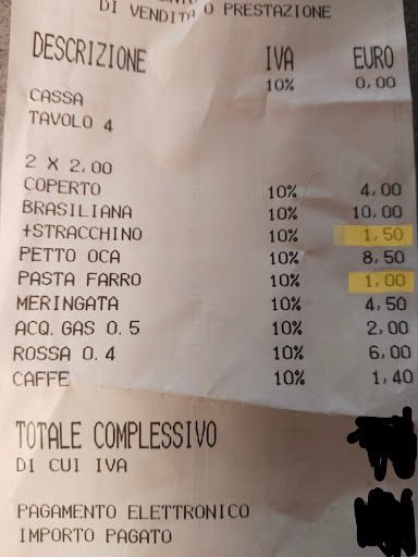 Dopo un bel po' di tempo siamo ritornati ad Amici Miei, purtroppo devo modificare la mia precedente recensione. Abbiamo mangiato due pizze un'acqua piccola, una birra rossa, una meringata e un caffè. Con il servizio ho visto un po' di confusione ma alla fine il mangiare e bere ci è arrivato. Le pizze erano buone, ma trovo parecchio scorretto mettermi come aggiunta 1,5 euro per lo stracchino perché dalla pizza avevo chiesto di togliere il brie, quindi doveva essere una sostituzione di ingrediente. La seconda pizza non era specificato che aveva la pasta al farro, non abbiamo chiesto la pizza al farro e quindi perché la metti come aggiunta? La birra rossa era buona ma per 0,4 l, mi chiedi 6 euro.... È un po' caruccio. Allego la foto del scontrino, ma solo per fare capire cosa spiegato sopra. Personale cortese ma per il resto abbiamo...