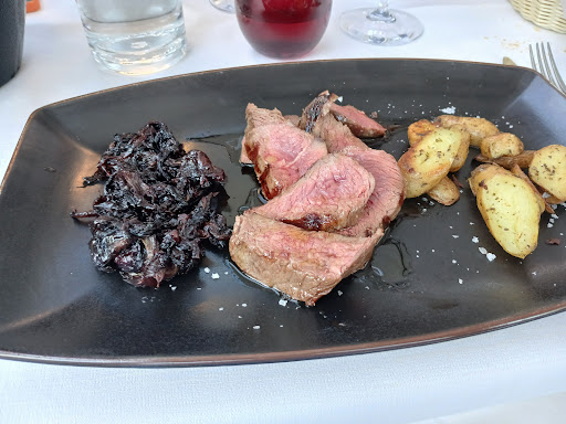 Read moreRistorante/Pizzeria al fresco nel borgo di Golferenzo. Location carina con tavoli all'esterno nel giardino del locale (forse troppo ammassati) e diversa disponibilità di posti a sedere anche all'interno. Abbiamo assaggiato una millefoglie di baccalà ed un tonnarello cacio e pepe con gamberetti e sughetto al limone. Ottimo il millefoglie, non eccessivamente convincente il tonnarello troppo al dente, slegato dal condimento ed in quantità davvero scarsa. A seguire una tagliata di fassona ed un controfiletto di manzo serviti con patate e verdure grigliate. Buono il gusto della carne, purtroppo un pochino "dura" e purtroppo arrivata troppo cotta nonostante fosse stata chiesta in cottura media. Da bere una buona bottiglia di Monsupello Rosè. Per concludere caffè e grappa chiesta per due volte barricata ed arrivata al terzo sollecito di moscato... Conclusione: conto leggermente alto rapporto ad un locale che vorrebbe essere un gradino sopra la media, supportato però da cucina con alti e bassi, da un buon servizio cortese ed attento ai tavoli, dove però non ho apprezzato che non mi abbiano cambiato le posate tra il primo ed il secondo (mi hanno appoggiato la forchetta del primo, una di sugo, direttamente sulla tovaglia) e che lascino fumare i clienti senza rispetto per le persone ai tavoli vicini (ho praticamente cenato aspirando il fumo delle innumerevoli sigarette del tavolo a fianco). Nel complesso una serata gradevole dalla quale però mi sarei aspettato molto di più... Indeciso sul...