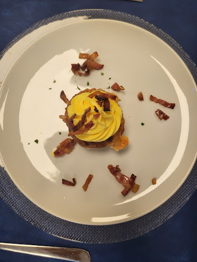 Abbiamo scelto questo posto perché vicino al nostro albergo. Dopo una breve telefonata abbiamo prenotato un tavolo che al nostro arrivo, circa 20 minuti dopo, era già preparato e riservato. È stata una mossa intelligente poiché il locale era strapieno. Per cenare abbiamo preso il frico con contorno di verdure grigliate e pizze Margherita e Giallona con acqua, birra alla spina e birra analcolica. Guardandomi intorno dopo l'ordinazione ho visto scritto su un muro che c'era una pizza speciale "Gloria" con stracciatella, noci e funghi e quasi mi ero pentita di non aver visto prima quella scritta. Ma l'universo non sta mai fermo e la cameriera è tornata scusandosi che i pomodori gialli mancavano quindi all'invito di fare una seconda scelta, ho chiesto subito la "Gloria". Scelta molto felice! Raccomando questa pizza a tutti. Sapori ben equilibrati per una pizza inusuale ma saporita e appagante. La cameriera è stata tutto il tempo molto attenta, gentile, premurosa. Nel complesso siamo stati tutti bene e abbastanza soddisfatti della cena ma soltanto "Gloria" ha...
