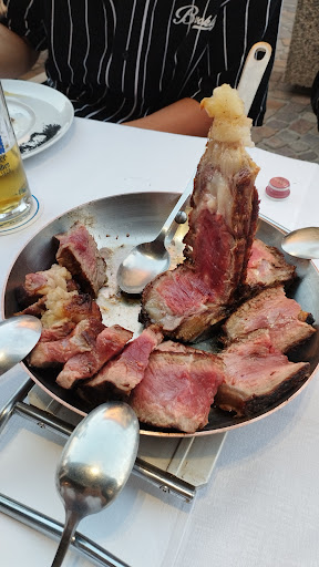 Read moreSiamo stati qui per la prima volta, ce l'ha consigliato un amico. Abbiamo fatto una cena in 2 e partendo come antipasto da degli ottimi affettati con 2 calici di un buon frizzantino, siamo arrivati al piatto forte, la specialità della casa, la fiorentina! La nostra pesava 1 kg e 600 g, accompagnata da 2 ottimi contorni portati a parte, come delle patate caserecce e un misto di funghi trifolati al tegame. Sinceramente abbiamo fatto fatica a finirla, infatti quel pó che non ci stava più c'è lo siamo portati a casa!! Abbiamo finito la cena con un gelato alle pere con scaglie di cioccolato accompagnando una buona grappetta. Il costo infine non è stato eccessivo, anzi, tutt'altro!!!!! Bravissimo anche il titolare, vivace e simpaticissimo, da subito è stato molto ospitale e la sua accoglienza e cordialità ci ha colpiti piacevolmente. È un tipo molto alla mano e sa mettere le persone a proprio agio...ti fa proprio sentire a casa tua!!!...infatti, all'inizio della cena, ci ha portato in tavola ben 3 bottiglie diverse di vino, 1 di bianco e 2 di rosso, lasciandocele in tavola così che in base alle nostre preferenze ed ai nostri gusti ci potessimo servire da soli! Ci ha portato lì anche 2 diverse bottiglie di olio x aggiungere un tocco in più ai funghi ed anche queste erano davvero speciali! Con una goccia su una fetta di pane ne si poteva assaporare a pieno il gusto...molto pregiati!! Pagando infine il conto è stato piacevole anche il fatto di poter scambiare 4 chiacchiere con il titolare, un Po per conoscenza, un Po per curiosità nostra!!!...durante la cena poi, ogni tanto usciva dalla cucina anche sua mamma, una signora sull'ottantina, anche lei come suo figlio, molto simpatica!!!...il locale è rustico, ma molto ben tenuto trasmette calore e familiarità. Insomma tutto piacevolmente molto bello!!! Direi proprio che ci torneremo presto, appena ne avremo...
