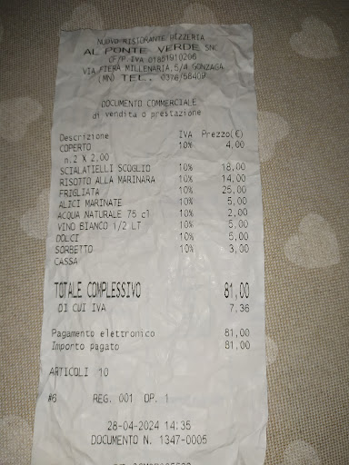 Premessa, vengo in questo ristorante da quando ero ancora nella pancia di mia madre e ho sempre mangiato benissimo e non ho mai avuto nessun problema. Il problema insorge ad inizio settimana quando mi presento per prenotare un compleanno (pizza+bibita) per bimbi di 11/12 anni, in quel momento mi viene fatto un prezzo, a mio avviso, eccessivo e “lamentandomi” mi viene detto che se ovviamente prendevano una margherita avrei pagato una cifra diversa (ragionando e su mio errore lo ammetto ho inteso “margherita” come modo di dire che se viene fatta una pizza semplice viene fatto un prezzo diverso). Detto ciò, ho cenato anche io personalmente nel ristorante e come sempre qualità del cibo ottimo su questo non posso dire nulla, tuttavia il problema insorge quando arriva il conto che considerava un determinato prezzo e io dato che é un mio diritto chiedo (ripeto vista una mia concezione di prezzo eccessiva) da cosa era dato quel determinato prezzo. A questo punto mi viene data una risposta che per me non é insensata ma proprio priva di fondamento visto che facendo il conto risultava un prezzo decisamente più basso…le parole sono state:” oltre a pizza, bibita e coperto devo ovviamente pagare anche il lavaggio dei piatti” e a questo punto mi domando cosa sia incluso nel prezzo del coperto e mi viene detto posate, tovaglie etc ma invece…il lavaggio dei piatti no…e allora perché nel mio tavolo separato quel lavaggio dei piatti non é stato conteggiato? Sarò fiscale io ma secondo me l’onestà viene prima di tutto e in questo caso onestà e rispetto per il cliente non...