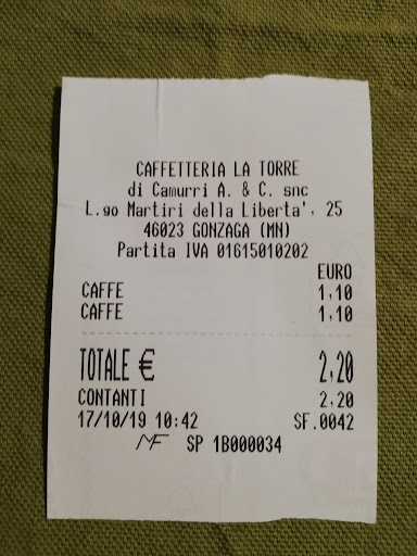 Read moreMercatino dell'antiquariato a Gonzaga? Si mangia esclisivamente alla caffetteria La Torre... È un bar che realizza panini e primi piatti e insalate. Qualità del cibo buona, cortesia e piacevole accoglienza....