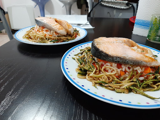 Gentile proprietaria, per ribattere alla sua risposta, che conferma la scarsa professionalità, mi permetto di inviarle foto della mia cena di oggi, evidentemente nouvelle cuisine: trancio di salmone, su riso bianco con dadolata di pomodoro e carote, evo, sale e basilico, con contorno di spaghetti di zucchine al balsamico, menta e zenzero. Preparato in 30 minuti scarsi, da una non ristoratrice e che non ha mai studiato né...