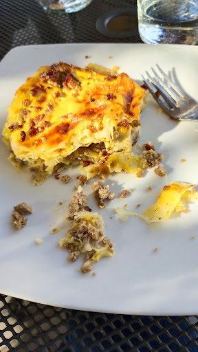 Read moreCi siamo fermati a mangiare qualcosa dopo un giro al famoso e carinissimo mercatino dell'usato/antiquariato. Ore 14, pieno di gente che voleva mangiare, cucina già chiusa. Rimaste solo lasagne o rossa o in bianco e gâteau di patate. Tempo di sedersi (30 secondi) e la rossa non era già più disponibile. Ci sediamo ad un tavolo che era da sparecchiare, ordiniamo 2 lasagne bianche e un gâteau. Ci vengono portati i piatti dopo 1 minuto senza il bere e senza che nemmeno ci riapparecchiassero (i coltelli e i tovaglioli sono arrivati a metà pasto dopo averli chiesti). Abbiamo dovuto ridare indietro i piatti per farceli riscaldare perché erano completamente freddi. Lasagne terribili, secche, con gli ingredienti che si separavano, il Gâteau appena meglio. Entrambi pieni stracolmi di pepe. Uniche note positive: personale gentile e simpatico e prezzi bassi....