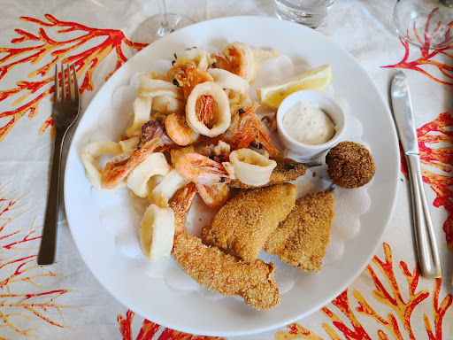Read moreWir sind zufällig vorbei gekommen und waren Hungrig. Als Fischliebhaber giert es mich total nach Meeresbewohnern am ersten Tag des Kurzurlaubs. Die Auswahl der Karte ist Überschaubar auf Italienisch und dem Üblich schlecht übersetzten Deutsch (immer ein Fest) das Lokal an sich war jetzt nichts besonderes außer das traditionelle war:). Nachdem ich auf der Karte nichts gefunden habe entschied ich mich für denn Frischen Fisch aus dem Schaukasten, Branzino (Wolfsbarsch) Goldbrasse und Scholle starten mich mit klaren verführerischen Augen an. Ich endschied mich für einen Wolferl mit Bratkartoffeln und Spinat (klassisch) meine Freundin Pasta Bologna (is(s)t mit Fisch noch vorsichtig). Ca. Eine halbe Stunde bei mäßigen Betrieb ist in Ordnung kamm das Essen, der Wolferl Sa sehr gut aus!! Und so schmeckte er auch!! Die Beilagen... Tja due Kartoffeln waren leider vom Vortag aus der Friteuse mit Rosmarin versucht zu kaschieren der Spinat war ein Salt und die Penne Bologna waren wie zu Hause nix aufregendes... Es kamm mir alles etwas Lieblos vor keine Garnitur und wenig Kräuter. Dennoch der Fisch war Fantastisch!! Zum Endpreis €41,- für 3 Spritzer, der Fisch, die Beilagen und die Nudeln das fanden Wir nicht so schlimm bis auf die alten Kartoffel mit €4,-... Zum Schluss kann man machen es ist nichts schlechtes und schmeckt auch solide und Preis Leistung ist ok. LG Michael...
