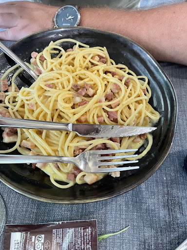 Read morePrima di tutto una raccomandazione: diffidate delle recensioni negative! Questo locale merita una visita e tutte le stelline a disposizione, anche di più. Purtroppo ne ho lette di negative che facevano riferimento all'attesa e molte pubblicate nelle settimane a cavallo di ferragosto dove, obbiettivamente, è normale dover attendere più del solito, viste le migrazioni di intere famiglie in vacanza. Ma poi in vacanza non sarebbe meglio abbandonare la fretta, e godersi la magica atmosfera di questa splendida cittadina? Comunque queste sono mie considerazioni personali. Passiamo quindi ai piatti. Menù più che completo sia di pesce che di carne. Menù esposto sulla lavagna all'esterno del locale e consegnato al tavolo assieme alla lista dei vini. Abbiamo scelto varie portate ma il piatto che mi ha entusiasmato di più è un classico: gli spaghetti alle vongole! Presentazione e impiattamento ottimi. Vongole abbondanti e .. sorpresa.. pasta fatta in casa! Al primo approccio potrebbe trarre in inganno perché risulta compatta e asciutta (proprio perché non industriale) ma basta mescolarla con le vongole e il sughetto, arrotolare gli spaghetti facendo attenzione a pescare anche vongole e il gioco è fatto!! Un'esplosione di gusto che i vostri amici non mancheranno di notare. Talmente buoni che, complice anche l'ottimo pane, non ho resistito .. via di scarpetta con il risultato che il piatto sembrava appena uscito dalla lavastoviglie. Tutta la nostra tavolata ha apprezzato i piatti scelti. Ultimo aspetto il servizio. Non ricordo i nomi dei due ragazzi e della ragazza che si occupano dell’accoglienza agli ospiti, tutti giovanissimi e molto molto attenti e simpatici. Per concludere il locale merita sicuramente la vostra visita .. non ne...