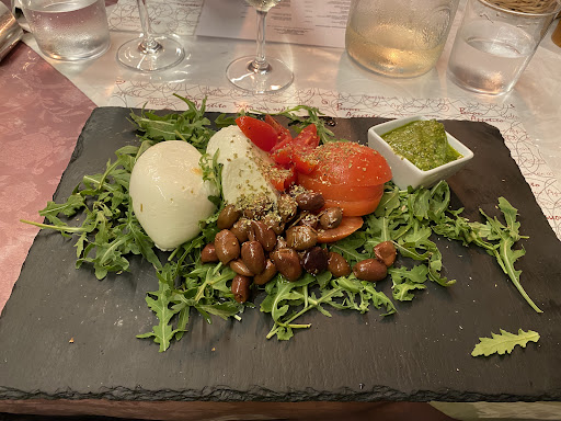 Aber dem seie genug Aufmerksamkeit gewidmet: es geht um das Essen: Umwerfend. Wir haben zwei Vorspeisenplatten zusammengestellt, eine mit Canestrelli, Cappelunghi und Cappesanti, und eine mit Oktopus mit Kartoffeln, Tintenfisch zu Rucola und eine mit großen Shrimps in Radicchiodressing. Alle umwerfend gut angerichtet und au point gegart. Ich gestehe, die letzten Salatteile des Dekos gegessen zu haben, um die unglaublich leckeren Marinaden und Soßen noch mitzunehmen...seufz Dann war Pizza angesagt, hier sollen mit die besten Pizzas Grados manufakturiert werden, laut Einheimischen. Ich hatte natürlich Frutti die Mare. Gross, mit bildschönem Rand, reichlich belegt, sogar ein Berg Miesmuscheln darauf. Alle Meeresfrüchte waren erkennbar frisch. Die anderen der Gruppe hatten Capriciosa, Quattro Formaggi und Rucola, Crudo und Burrata. Jede Pizza war geschmacklich perfekt abgerundet, harmonisch und divers. Nichts angebrannt, nichts roh. Perfekt. Für die Kinder gab es sogar noch eine Gratissalamipizza. Der Wein dazu: Hauswein, rot. Sehr trinkbar, natürlich keine Oper am Gaumen, aber doch erfrischend und mit stimmigen Noten. Als Nachtisch gab es für mich eine Kreation mit Zitronenmousse...und mit Beeren, handverlesen, krossem Ingwergebäck, Coulis aus selten leckerem Obst. Ich habe zuweilen in Michelin-Sterne-Restaurants gespeist, und dieser Nachtisch ist sternewürdig, die kontrastierenden Elemente fügen sich nahtlos in das Oeuvre ein, zusammen mit den harmonischen Elementen. Banal gesagt: es fiel mir ausserordentlich schwer, mich davon abzuhalten, die Schüssel abzulenken... Nur die männlichen Kellner stören etwas: sie sind nicht freundlich. Bitte ruhig darauf ansprechen. Die Mädels waren super freundlich und lasen einem die Wünsche von den Augen und Lippen ab Die Toilette ist sauber und gepflegt. Klare Empfehlung. Für 9 Gäste zählten wir insgesamt 280€ mit viel Wein und...