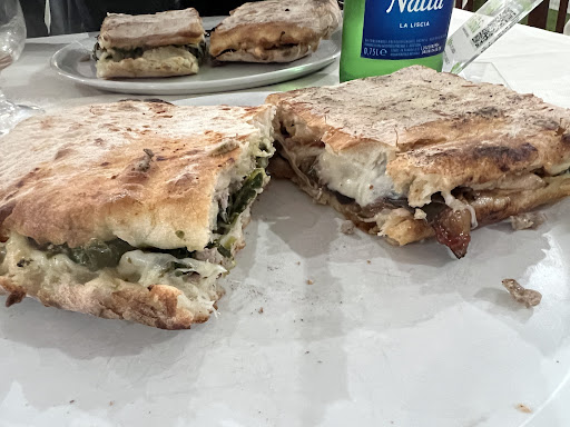Veniamo al cibo: il panuzzo era buono. Noi ne abbiamo diviso uno in due, ingredienti di qualità, anche la salsiccia (che solitamente non amo) era gustosa. Quello con la porchetta invece era pesante, pieno d’olio, e la carne inspiegabilmente secca. Patatine congelate poco cotte.