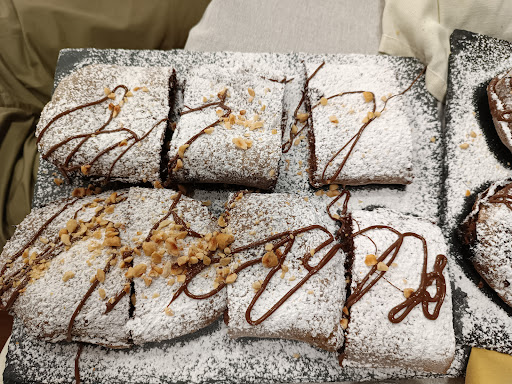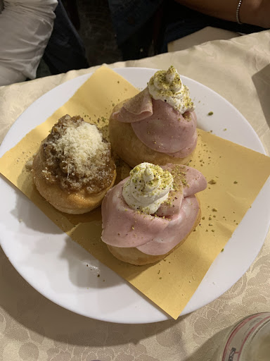 È pur vero che il sabato sera è un delirio ovunque si vada, ma questo non presuppone che il servizio ai tavoli sia in pratica inesistente. Per tutta gran parte della la durata della cena io e mio marito abbiamo bevuto la birra in un solo boccale, dopo che ripetutamente ne abbiamo richiesto un altro. I piatti sporchi non venivano ritirati dalla tavola, nonostante arrivassero nuove portate......ad un certo punto c'erano pile di piatti che occupavano spazio sulla tavola. Il cibo salato, e non poco, nulla di particolare, soprattutto la specialità della casa, il panuozzo, che nella versione salata, era praticamente immangiabile, tanto era salato, mentre nella versione dolce ( quella in foto) era molto buono. I prezzi nella media.......devo dire per fortuna, data la qualità del cibo. Il parcheggio era lungo la strada comunale esterna ( per fortuna noi abbiamo trovato un posto vicino, ma altri si son dovuti fare un bel po' di strada a piedi) pericoloso da percorre per i pedoni, data l'assenza di marciapiedi e con le auto che ti passavano accanto. Dimenticavo che la sala dove eravamo, piena di ospiti, aveva le vetrate aperte con zanzariere ma si moriva dal caldo perché non c'era aria condizionata. Gli ospiti che hanno avuto la fortuna di avere un tavolo all'aperto sicuramente non sono stati costretti ad uscire, come noi, ripetutamente a prendere una boccata d'aria fresca. Allucinante. Se dovessi ritornarci, sicuramente non lo farei ma opterei per un...