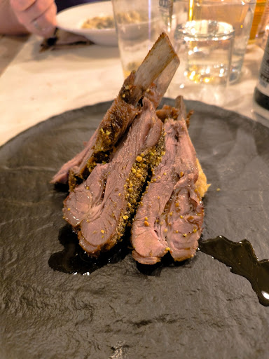Read moreVisitato più volte per cenare. Posto dal design minimalista, soffitti alti, alcune piante, buona pulizia; questo però significa un locale con un rimbombo tale da fare fatica a parlarsi allo stesso tavolo: troppo rumore. Servizio buono, tempi adeguati, menu completo anche se ridotto a causa covid. Antipasti tutti buoni, affettati vari e di qualità, fritti fatti bene. Primi: non consiglio i risotti a mio parere eccessivamente cotti. Secondi: purtroppo la fiorentina è stata una delusione, molto asciutta e dura ed a tratti carbonizzata; ho fatto notare la cosa al servizio in sala e siamo rimasti 25 minuti ad attendere una risposta che non è arrivata, al che abbiamo chiesto il conto che è arrivato a cifra piena. (Qui errore mio perché non mi sono lamentato appena mi è stata servita e in cassa non abbiamo detto più nulla, però ritengo serva un po di onestà da parte di chi cucina nel controllare di non far uscire una pietanza che è evidentemente bruciata) Non sto dicendo fosse incommestibile poiché la abbiamo mangiata, ma assolutamente non valeva gli 88€ di listino per 1.1kg da cruda. Eravamo seduti davanti alla griglia e ho potuto vedere le carni cotte a fiamma viva per tutto il tempo che prendevano fuoco a tratti spargendo odore di bruciato (i vestiti il giorno dopo hanno ancora odore). Gli altri tagli di carne provati in passato e dai miei commensali erano buoni, ma con qualche simile...