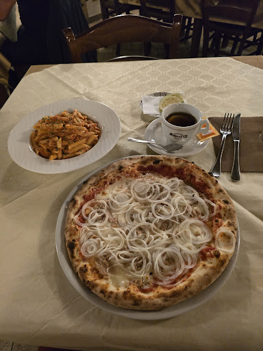 L'ambiente è semplice e il servizio abbastanza veloce e molto cordiale. Noi non volevamo pizza, che invece sembra essere la scelta della maggior parte della clientela, ma qualcosa di tipico. Alla fine abbiamo optato per 1 antipasto rustico (salumi e formaggi insapori e sottoli vari insapori, caponata e fettina di melanzana con pomodoro e ricotta salati discreti), 1 casareccia ricotta e pesto e 1 casareccia ricotta e salsiccia entrambi abbondanti ma senza gran gusto, 1 porzione di involtini siciliani (fettina di maiale ripiena di prosciutto e formaggio impanati e fritti) che non abbiamo finito perché veramente troppo pieni di olio e 1 porzione di patatine che invece erano molto buone e fritte davvero bene oltreché abbondanti. 1 litro di vino rosso della casa passabile e 1 bottiglia di acqua. Tot 43 euro. Personalmente non ci ritornerei perché, anche se non cattivo, nessun piatto era gustoso ma x chi vuole porzioni abbondanti e spendere poco può...
