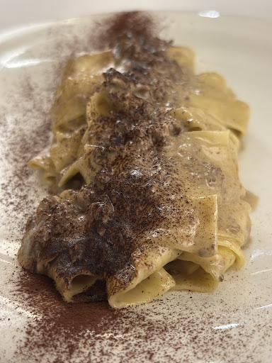 Read moreThe ravioli stood out with its delicate filling and well-balanced sauce, providing a harmonious start to the meal. The pappardelle was a pleasant surprise, with the subtle addition of cocoa elevating the dish to a rich and satisfying flavor profile. The filet mignon was of exceptional quality, perfectly tender and enhanced by a refined sauce that complemented the meat without overpowering it. The bistecca was equally impressive, cooked to perfection and full of robust flavor. However, the tiramisu at the end felt out of place on an otherwise excellent menu. The cocoa flavor was overly bitter and dominated the dessert, detracting from what should have been a smooth and satisfying conclusion. While the final note fell short, the overall dining experience was still...