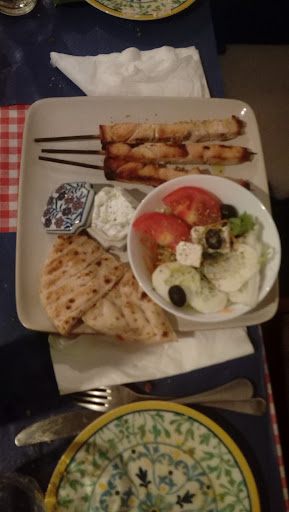 Il luogo è davvero particolare e rimanda allo stile greco, però non è curato nei dettagli a partire dalle tovaglie di plastica, il mix di cose appese con sporcizia e ragnatele, il bagno con doccia (che potrebbe essere ristrutturato) e altri dettagli qua e là che secondo il mio punto di vista estetico e di pulizia dovrebbero essere migliorate. Per quanto riguarda il cibo, consiglio di provare la pita e lo tzatziki. Il peperone ripieno l'ho trovato insipido e il riso all'interno molto pastoso. Il moussaka di melanzane era molto saporito, però pesante e unto più del dovuto. I dolmades (o sarmë) a seconda della cultura li ho trovati buoni, ma abbastanza insipidi. Il cous cous era buono. Il baklava era...