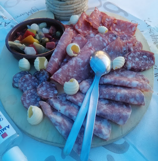 Oggi a pranzo eravamo solo in tre ed abbiamo mangiato alla carta: tagliere di salumi ottimi e quantità buona (vedere foto), vitello tonnato delizioso (la salsa è nella versione con maionese, che personalmente adoro), pasta alla cenere con gorgonzola ed olive (abbinamento azzardato, ma risultato ottimo!), panna cotta e bonet buoni.