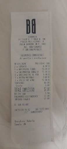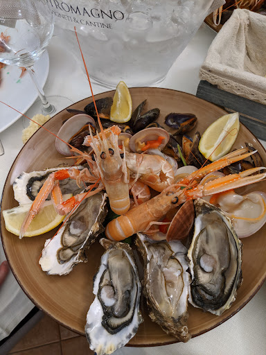 Prezzi totalmente fuori dal normale come 6€ per mezzo calice di vino di bassa qualità, 15€ per mezzo piatto di pasta, lo chef si è sbagliato a fare la porzione mi dicono, io credo che è stato fatto di proposito così prendevamo altri piatti perché non era sufficiente. Faccio notare che sul menù che hanno nella web lo danno per 12€ e mi toglie 3€ di "sconto", dicendo che è "un errore" della web. Si però l'altra mezza porzione che ho pagato dov'è? Dai penosissimo! È davvero da morti di fame. Ma davvero state messi così male da dover arrivare a questi sotterfugi per poter campare? Contenti voi di truffare i poveri turisti che sono malcapitati dalle vostre parti, mah vergognoso!