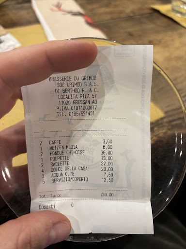 I have only had pizza in and take away at the Grimod. It sits in a featureless 70/80s building part of Pila but you would never know inside. It's very rustic old wood beams everywhere and matching tables and chairs. It has a side sofa cosy area for an apero and chat with friends. The pizza oven is open and the kitchen in view. Pizzas are simple thin crust and great although I'd like a little more creativity and whole foods approach, I don't like it when the chef chucks all the ingredients like capers in the middle or in one place after all who can eat a mouthful of capers. So a little more attention to creativity and chef detail wouldn't go a miss. Staff at the bar are accommodating and helpful and found us a table whilst very busy afyer a few minutes at the bar waiting. I have an issue with the apero snacks , they have a selection of olives, nuts and bread you can help yourself to with a spoon onto a sideplate. Great idea. However whilst I was there a local lady friendly with the head chef/owner came in a simply started eating olives and aperos from the main bowls. Meaning anybody later in the restaurant shared that ladies hands and saliva. Uhm not ideal. So keep the aperos behind the bar clean and safe and offer them to clients in need on the side plates provided. Why not offer the superb foccacia flat bread with herbs and oil as...