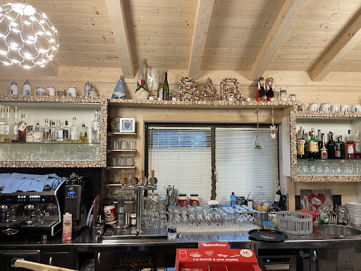 Tappa obbligatoria se durante la festa della birra piazzate le tende nel campo sportivo. Trovo interessante nella colazione questi croissant che paiono si pasticceria, belli grossi e soffici, buon caffè ben estratto e cappuccino fatto con la crema giusta,poi un po' come in tutti i locali dipende chi te lo fa. Per aperitivo una birretta o uno Spritz da loro vale la pena, piattini d'accompagnamento tipo pizzette sempre abbondanti e tante patatine. Prezzi onesti ed in linea con quelli di un bar. Location tutta di legno molto interessante. Bagni funzionali e sempre puliti. Punto importante di ritrovo se...