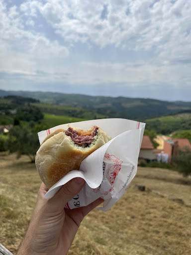 Read moreFor food lovers coming anywhere near Panzano, this is an essential stop! Created by the renowned butcher and restauranteur, Dario Cecchini, this roadside cart serves sandwiches on a sturdy Tuscan roll with everything from the simple beef belly and salsa verde, to a beautiful freshly ground burger served medium rare, to an absolutely decadent take on pastrami: oily, fatty housemade pastrami with caramelized onions, mustard and pickles. Make sure to order the Pomodoro as well - a bowl of slow-cooked tomato sauce perfect for dipping bread into. Plus, a beautiful view of the...