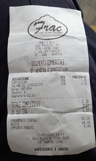 Read moreProdotti validi ma personale poco chiaro, ossia che il tempo per essere serviti è lungo, anche con pochi clienti e spesso tornano anche due volte a chiederti cosa avessi ordinato. In particolare ho preso un cappuccino, 1,80€ prezzo normale per una pasticceria, presi poi un salame al cioccolato, che in vetrinetta presentava un cartellino con su scritto SALAME AL CIOCCOLATO 1,90€, allora lo ordinai, al momento di pagare mi ritrovai a pagare 5,60€, allora chiesi spiegazioni sul prezzo del salame al cioccolato, allo scontrino 3,80€, e mi dissero che il cartellino era sbagliato. Quindi per quanto buoni i prodotti bisognerebbe evitare di truffare la gente... Per quanto mi riguarda non tornerò più e sconsiglieró sicuramente li dove mi...