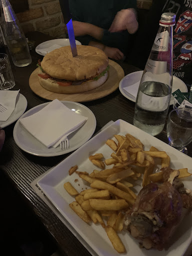 Se volete lanciare una sfida "man vs food" a voi stessi o ad un vostro amico, questo è il locale giusto. In tavola i panini sono di dimemsioni, a dir poco, gigantesche. Ho provato il più piccolo del tris 1.2kg contro i 1.7 kg del medio e i 2.0kg del grande : panino croccante con insalata, pomodoro, bacon, e svizzere di manzo e una marea di salsa; ingredienti buoni e dalla giusta "chimica "(gusto) che ti aspetti da un hamburger ignorante. Il locale è situato alla frazione bellori, dispone di un parcheggio, e di una piccola veranda coperta. Il personale è gentile e i locali puliti. È un pub/osteria :si mangia e beve ma il ricercato o il gourmet non è certamente di casa, in compenso ci sono tutti gli ingredienti per passare un ottima serata in compagnia di amici. Prezzi onesti. Lo consiglio Birra kilkenny alla spina ,...