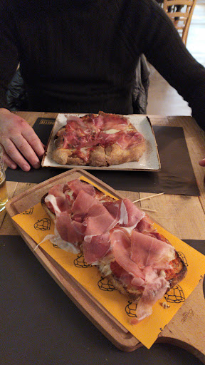 Read moreSpacciano una pizza con buoni ingredienti per una pizza gourmet poi non sono neanche in grado di cuocerla . E arrivata una pizza piccola alta e croccante ma talmente piena di formaggio da essere stomachevole e neanche del tutto sciolto , in alcuni punti proprio freddo . Avvisato il cameriere porta via la pizza pre tornare qualche secondo dopo chiedendo se doveva rifarmela o scaldarla. Io affamato o chiesto di fare presto e loro me la hanno riscaldata . In cassa ho chiesto uno sconto per il disguido visto che un piatto da 10 euro non era all'altezza di una pizzeria . Dopo che il cassiere è andato a chiedere al cuoco mi estate risposto che potevano offrirmi un giro di amaro o di birre . Io risposi che avevo bevuto abbastanza eche dovevo guidare e gli proposi di offrirmi un dolce . Un po titubante e lamentandosi mi leva 2 euro dal conto . Direi indecente . Insomma 4 fritti 3 pizze una bruschetta 2 litri di birra una coka 100 euro portati a 98 con il disguido. Le birre non sono di mio gusto alcune imbevibili tipo la bianca . Servizio impacciato e inesperto . L'unico che è decente come cameriere è un Riccio che sta in cassa . Non mi piace l'atmosfera e un pub on musica totalmente fuori contesto e oltretutto troppo alta , inutile chiedere di abbassarla non lo fanno ....