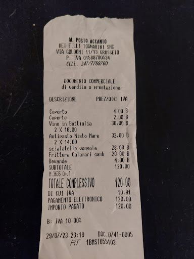 Read moreSono andato in questo ristorante per la cena del 31 con mia moglie e una coppia di amici, ci siamo trovati davvero benissimo, un personale cordiale e disponibile, il locale intimo e curato, la cucina a vista ed un menù ottimo. Abbiamo pagato solamente 60€ a testa per un menù totalmente di pesce composto da 4 piccoli antipasti, 2 primi, 2 secondi ai quali si è aggiunta una fetta di cotechino e lenticchie, 3 dolci, acqua e vino a volontà, caffè e spumante da stappare alla mezzanotte. Tutte le portate davvero ottime, distribuite bene nel tempo, non si è mai aspettato troppo tra una e l'altra riuscendo ad arrivare al conto alla rovescia qualche minuto dopo la fine della cena. Una cosa che abbiamo trovato molto carina è stata che ogni tavolo ha ricevuto una bottiglia di spumante da poter stappare in maniera autonoma. Lo consiglio vivamente, Al Posto Accanto è il ristorante giusto per un'ottima cena al...