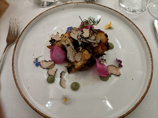 Degustazione #tartufo e #carciofo violetto. Nido al rosso d’uovo pastorizzato a 60 ° consistenza corposa ma ben bilanciata con il tartuto. Filetto di cinta brada grigliata davvero molto buono, tenero in piccole in quanto selezione personale del ristorante offerta solo esclusivamente ai clienti del ristorante con menù personalizzato in alcuni periodi dell’anno. Le tre N della mousse fiordilatte particolare con pane nero e un connubio di cioccolato e tartufo piacevole come chiusura della cena. Elia complimenti per l’empatia, preparazione e il sorriso durante il servizio che ha reso la nostra cena piacevole e piena di domande curiose alle quali hai soddisfatto ogni singola richiesta . Il quale ci ha spiegato che il #ristorante è stato rinnovato da soli 3 mesi, diversificando l’attività oltre l’hospitality. È bello sentire che un dipendente si trova nel posto giusto e lavora in un ambiente sano, felice di dove sta e di quello che fa, i miei complimenti dunque alla proprietà per la sua attenzione alla #governance aziendale . Location riservata e dall’atmosfera intima ma allo stesso tempo professionale degna di un #resort immerso nel verde . Se sei un amante del viaggiare e assaggiare sei nel posto giusto. Venite a scoprire questo posto nel cuore della #maremmatoscana #discovery #food...